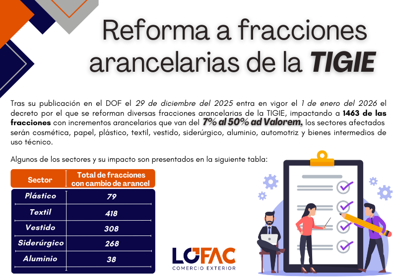 Reformas a fracciones arancelarias de la TIGIE